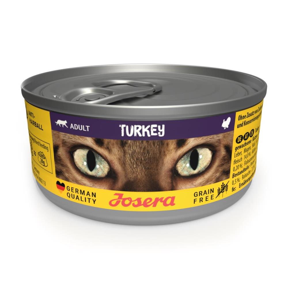 Rozkoszuj się chwilą karmienia swojego kota, dając mu to, czego naprawdę pragnie – naszą nową mokrą karmę Josera Turkey. Dla tych, którzy zawsze wiedzą, co chcą, to doskonała odpowiedź na ich wyrafinowane kocie upodobania. Soczysty indyk w praktycznej puszcze to nie tylko wyśmienity smak, ale także kompleksowa troska o zdrowie i zadowolenie Twojego pupila.
