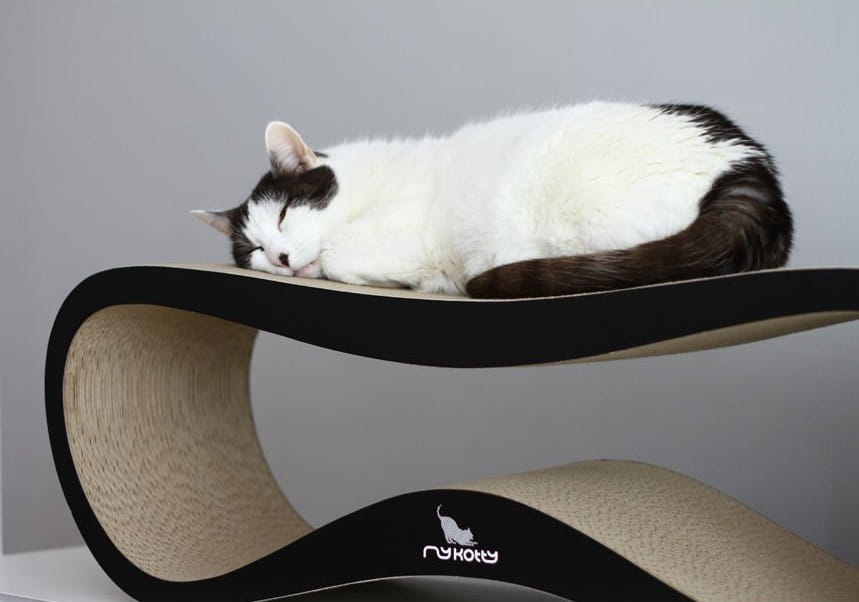 LUI to wielofunkcyjny mebel dla kotów. Materiał: naturalna tektura falista. Kolor frontów: czarny.